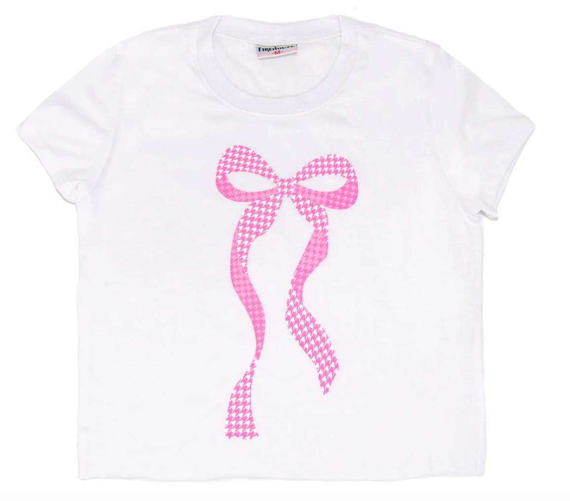 Firehouse Pink Gingham Long Bow Tee White